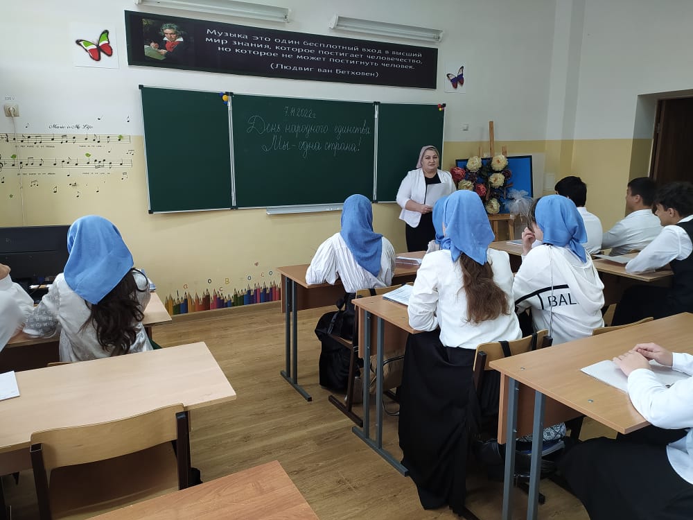 В МБОУ "ООШ с.Пионерское" Классными руководителями были проведены внеурочные занятия по всем классам на тему "День народного единства".