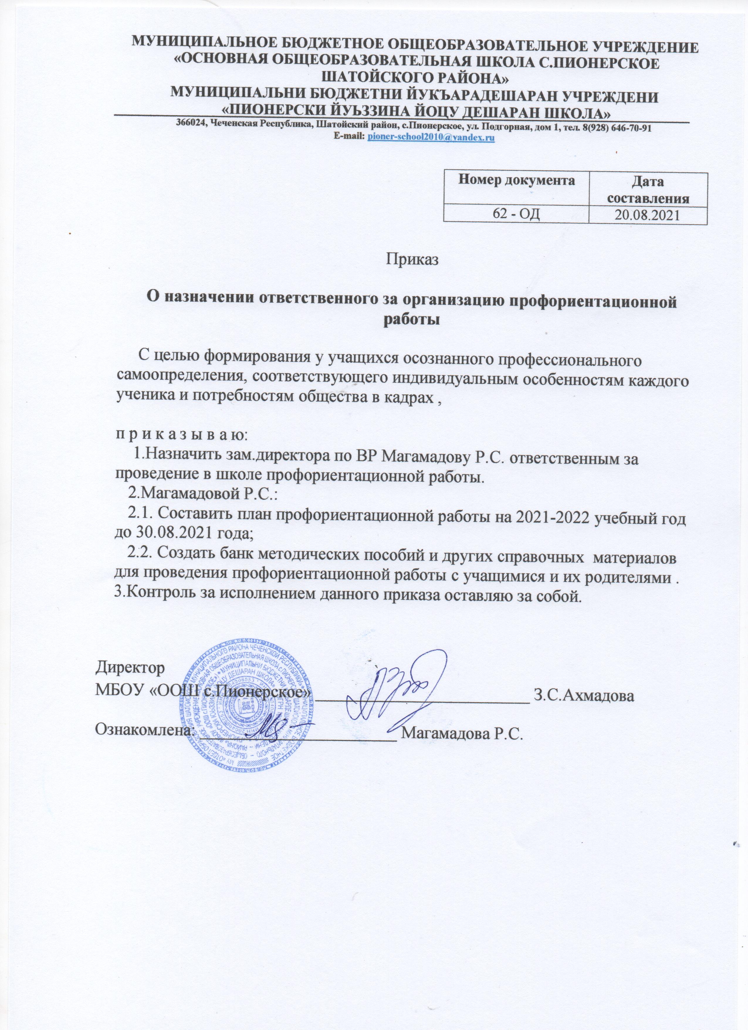 План мероприятий профориентационной работы в МБОУ "ООШ с.Пионерское"