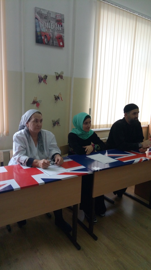 Их выступления оценивало жюри из трёх человек: Яндарханова М.-школьная медсестра, учитель биологии Сулипова Т.А., педагог ДНВ Ахматов С.С