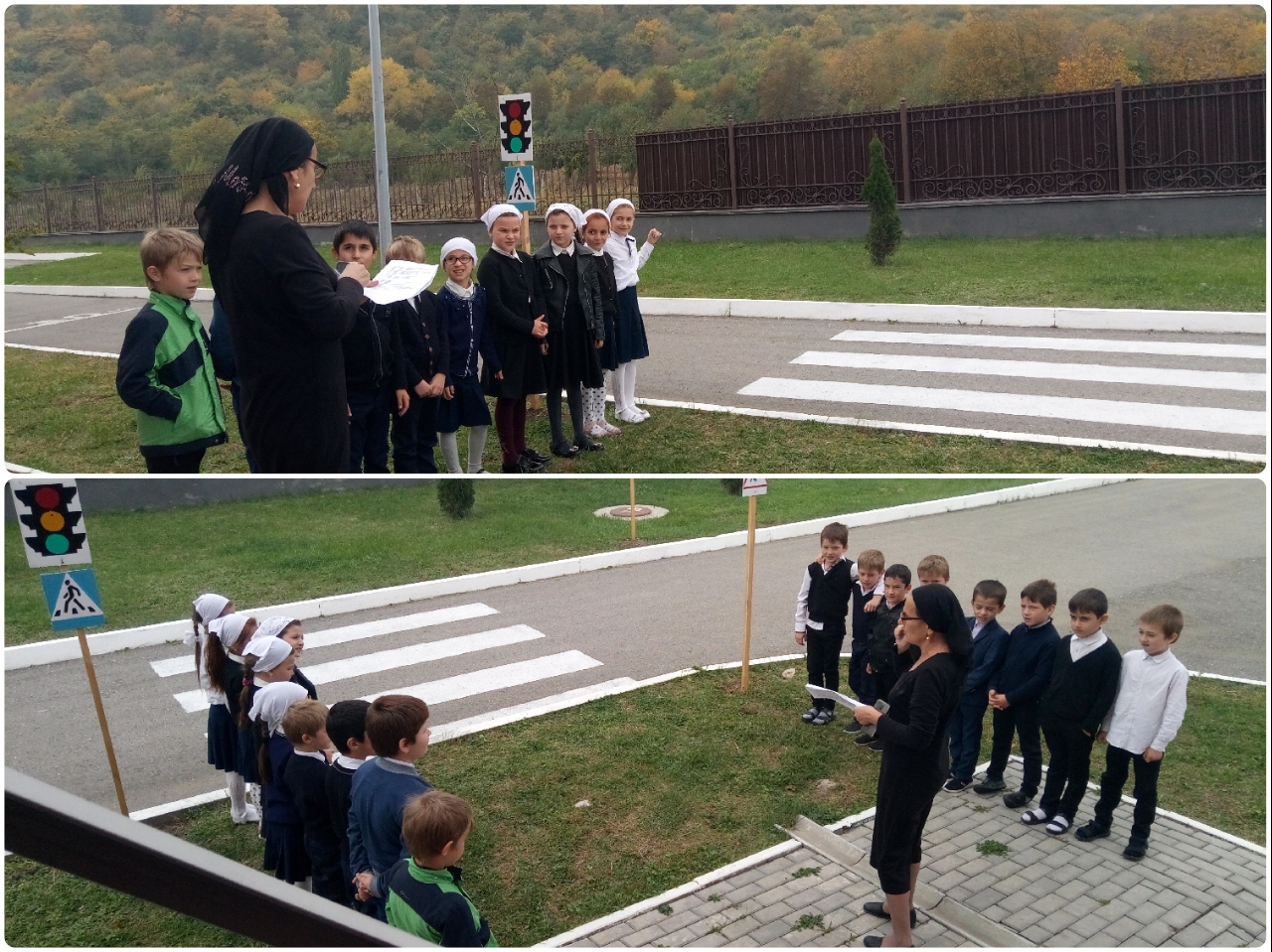 22 октября проведено практическое занятие с учащимися 2 класса по переходу нерегулируемых пешеходных переходов вблизи школы. Мероприятие прошло под названием «Пешеходный переход». Подготовила мероприятие учительница начальных классов Кубиева Х.Ш. Мероприятие проведено на автоплощадке школы. Дети знакомились с дорожными знаками, пешеходным переходом, светофором. Хедишт Шарпудиновна провела небольшую беседу о правилах для пешеходов: как правильно переходит дорогу, в каком месте, что означают чередующиеся белые, черные полоски на дороге(зебр).