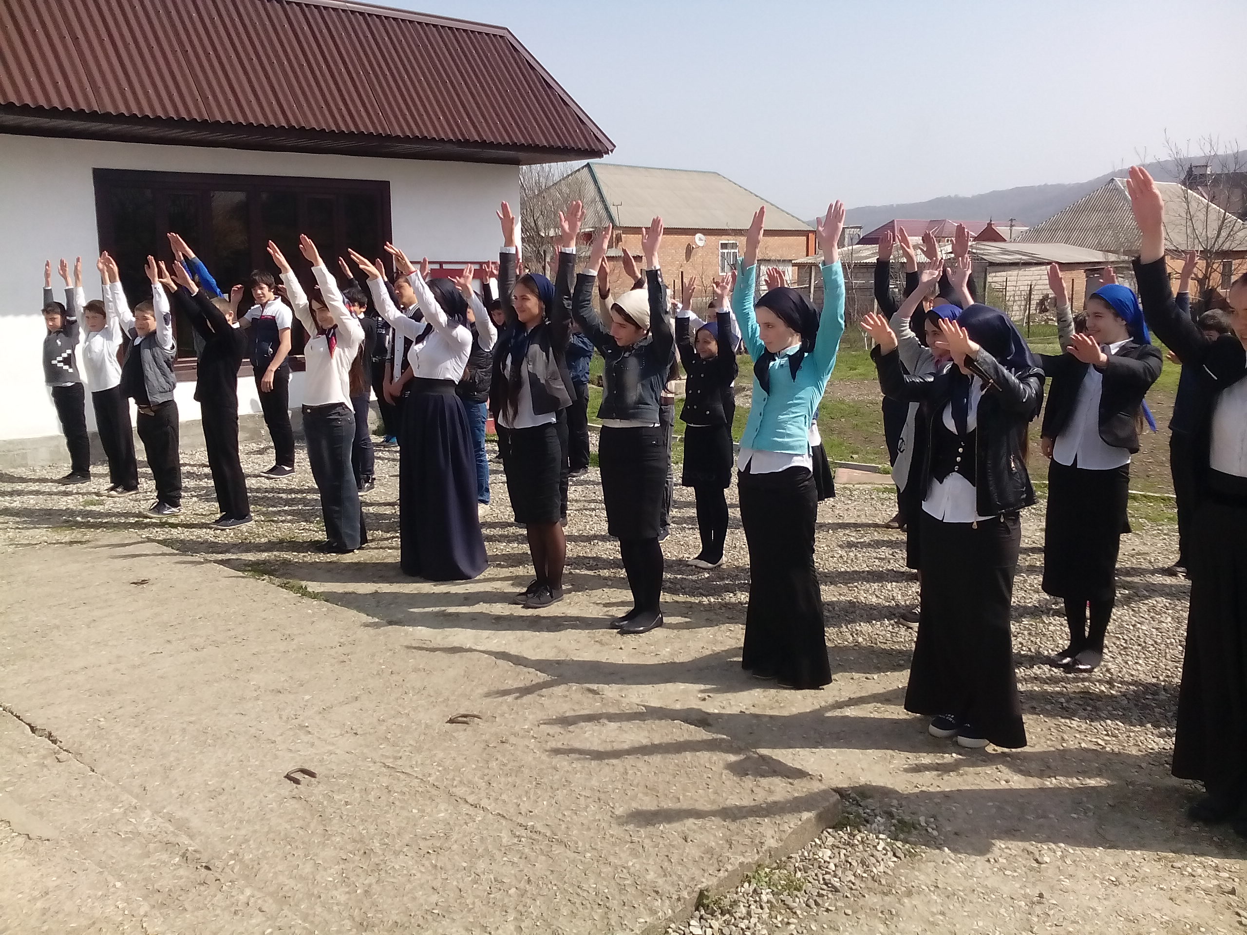 7 апреля день начался с утренней зарядки. Зарядку проводила Магамадова Р.С.