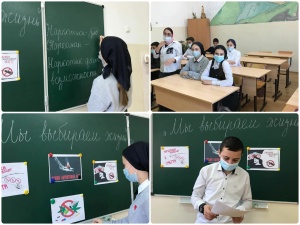 Классный руководитель Сулейманова А.С. рассказала о негативном влиянии наркотиков на здоровье человека. Чтобы жизнь была доброй, счастливой, нужны различные составляющие, среди них самое важное место занимает здоровье. Учащиеся тоже были активны, высказывали своё мнение, отвечали на вопросы.
