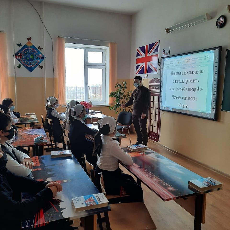 16.12.2020Педагог-организатор по ДНВ Ахматов С-Х.С. провёл в 5 классе беседу "Человек и природа в исламе". Он отметил, что бережное отношение к природе является обязанностью мусульманина. Об этом говорят Коран и Сунна нашего любимого пророка (да благословит его Аллах и приветствует). Согласно нормам ислама, защита природы - обязанность каждого верующего человека. Недостаточно только избегать разрушительных действий, мы должны активно защищать окружающую среду.