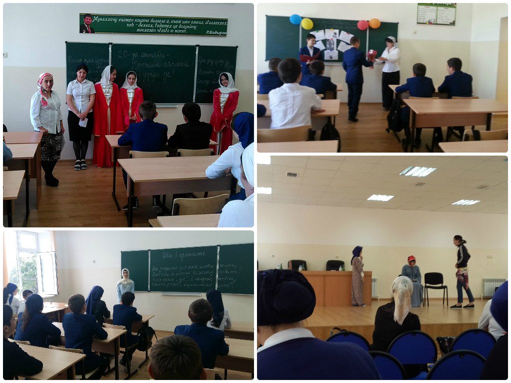 С 16 по 17 сентября в школе прошли классные часы, посвящённые Дню чеченской женщины, с целью показать роль женщины в жизни чеченского общества; познакомить с историческими личностями, ознакомить с родом деятельности чеченских женщин; воспитывать чувства патриотизма и гордости за свой народ и свою историю.