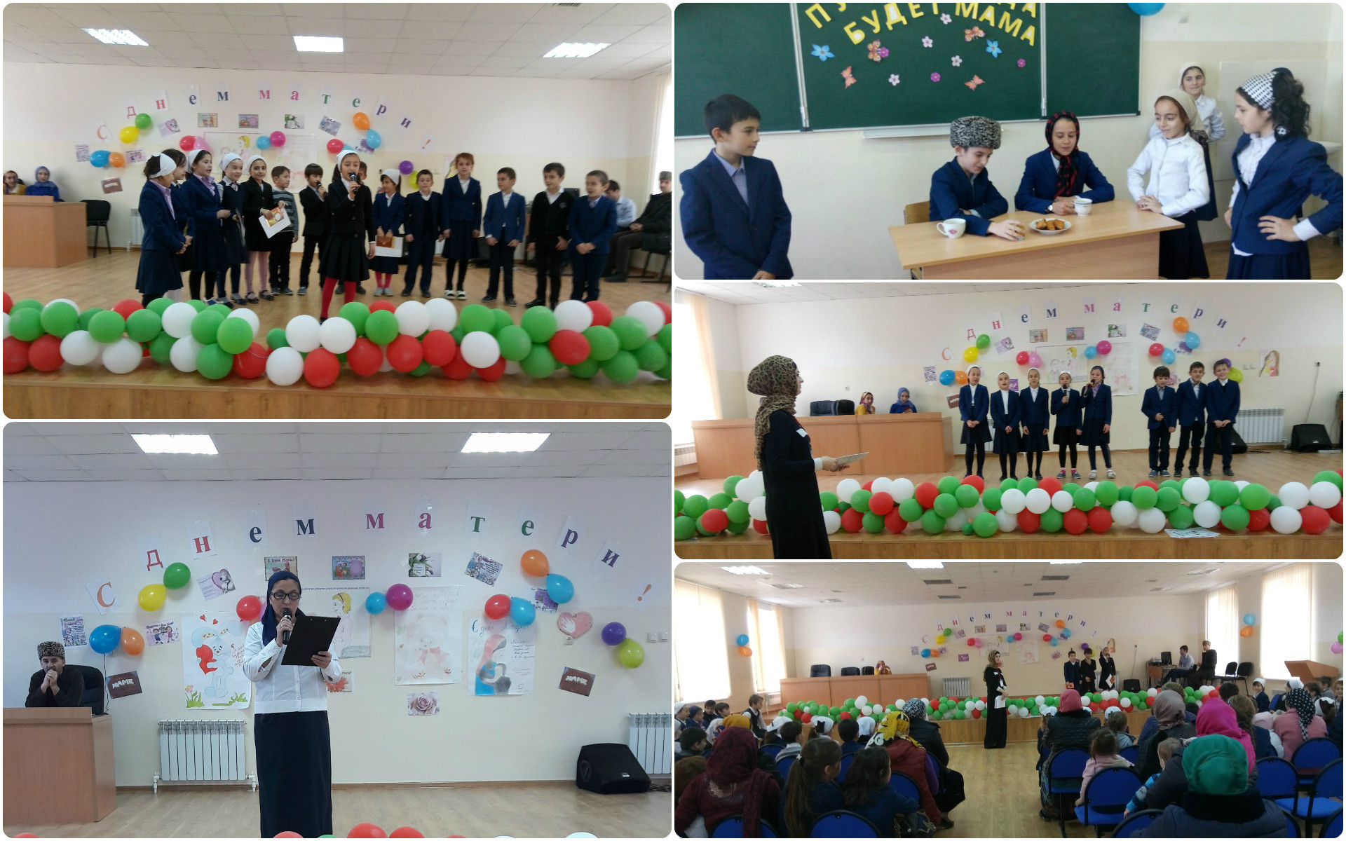 Во время праздника были проведены конкурсы: «А ну-ка, смекни!», «Самая ловкая мама», «Заплету я дочке косу», «Успей схватить». В конкурсах принимали участие две команды из числа мам «Супер -мамочки» и «Бабочки». Победу одержала команда «Супер-мамочки» (27 баллов),а команда «Бабочки»-26 баллов. Мероприятие продолжили своими яркими выступлениями ученицы 5,6,8 классов. Особенно горячо аплодировали зрители ученице 9 класса, когда она спела песню на родном языке о маме. Также прозвучали стихи о маме. В заключении объявили конкурс танцев для мам. Они танцевали со своими сыновьями.