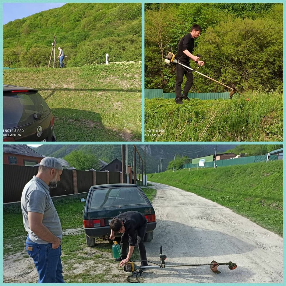 Сегодня наши работники приняли участие в субботнике на закреплённой территории в Шатое. Покосили траву на обочине дороги.