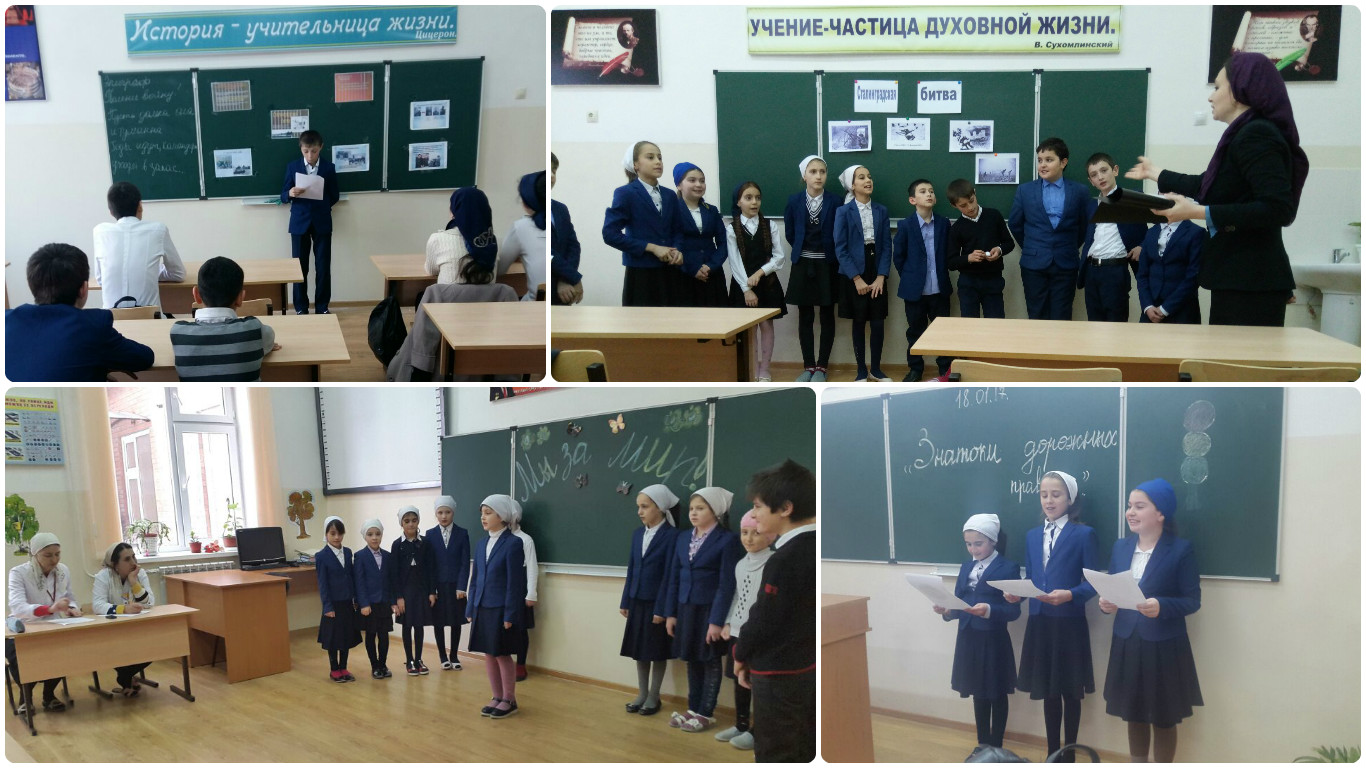 19 января состоялся конкурс чтецов-стихи, посвященные Родине, стихи о войне и мире. В конкурсе участвовали учащиеся 2-4 классов. Конкурс проводился с целью воспитания у учащихся чувство патриотизма, любви к Родине, родному краю. Такие конкурсы способствуют обучению выразительному чтению. Первое место присудили ученице 3 класса Артуевой С., 2место- Сулеймановой Д(2 кл.) ,3 место- Ахмадовой Р.(4кл.). Эти учащиеся будут награждены грамотами.