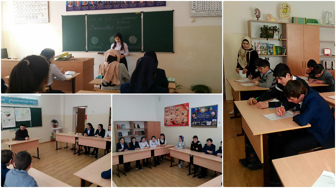 2 января Дашаевой Э.А. (ответст.за ДДТТ) провела с учащимися 5 класса игру по правилам дорожного движения «Счастливый случай». Участвовали две команды «Стоп» и «Кемпинг». Было много поучительных конкурсов. Дети были очень активны.