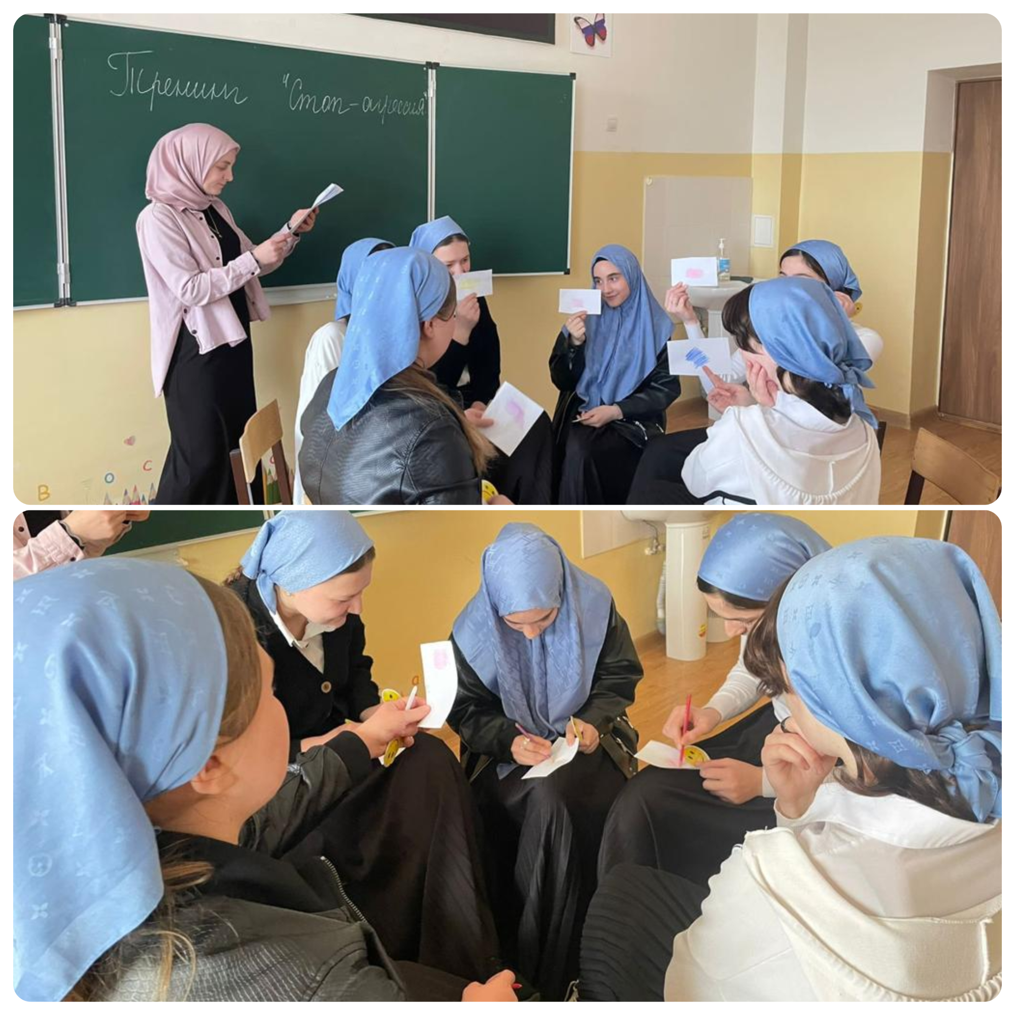 10.04.202310.04.2023г. педагог-психолог «ООШ с.Пионерское» Виситаева Ш.М. провела тренинг на тему: «Стоп- агрессия» среди девочек 9 класса. Были использованы упражнения «Палитра настроения» и игра «Комплементы». Мероприятие проведено для помощи учащимся в осознании собственных чувств и для формирования позитивного настроения.