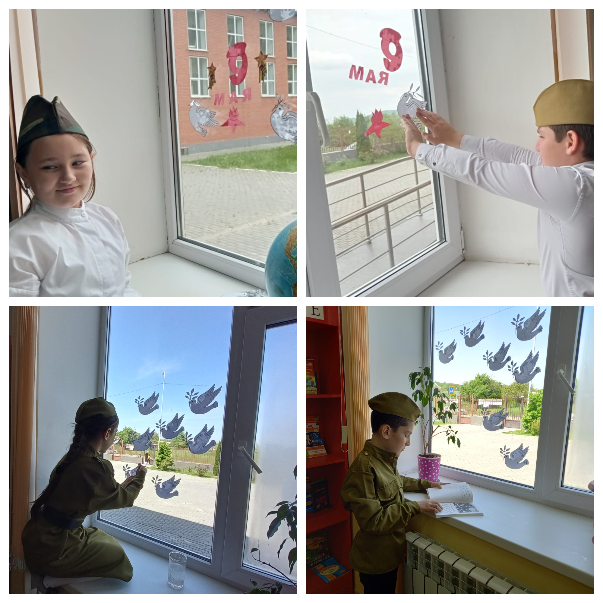 В течение недели учащиеся нашей школы украшали окна символами Великой Победы – георгиевскими лентами, красными звездами, словами благодарности ветеранам ВОВ.