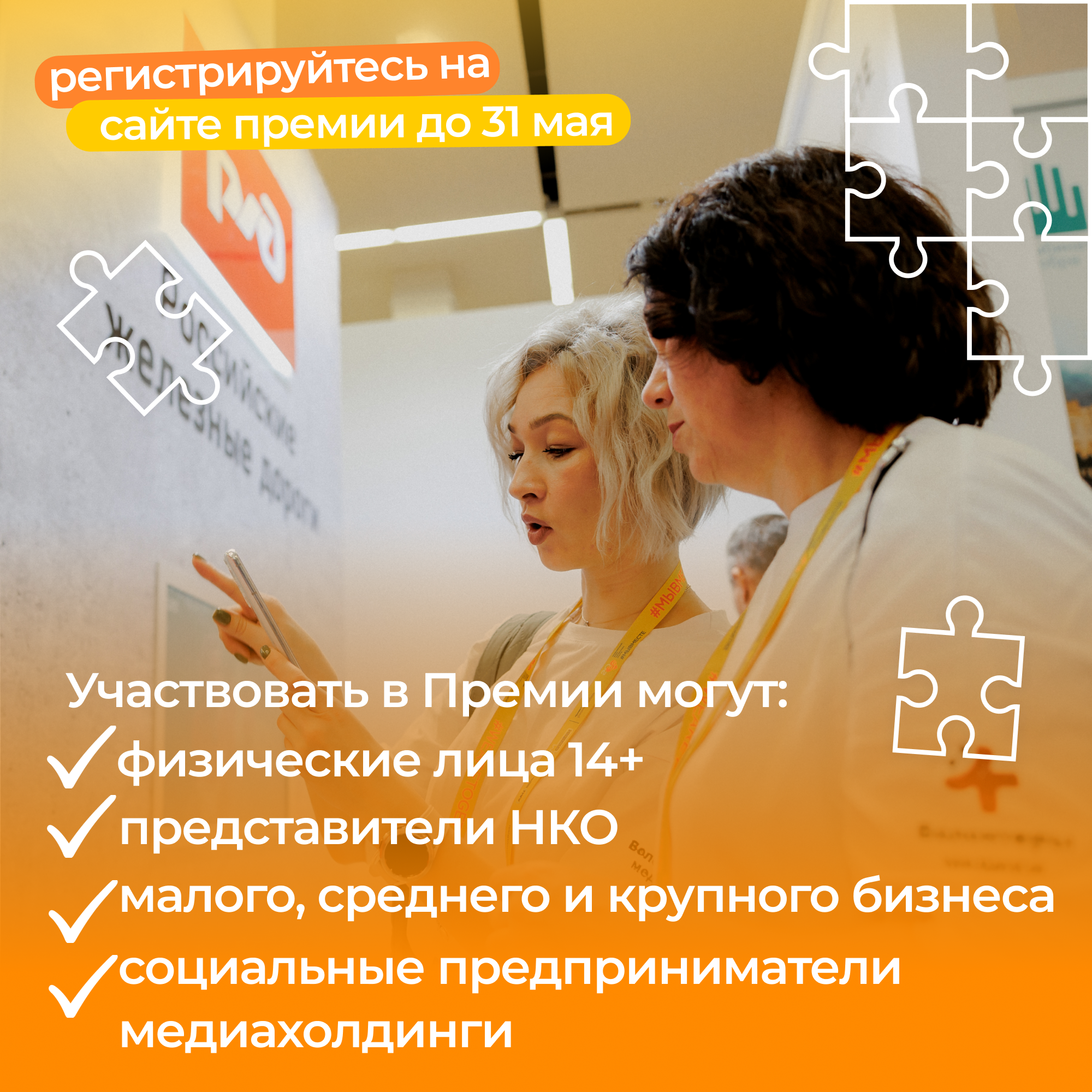 «По многочисленным просьбам мы продлеваем заявочную кампанию до 31 мая. Приглашаем всех авторов общественных и социальных проектов, НКО и бизнес принять участие в региональных этапах Премии. Почти 4 тысячи человек победят в них и смогут презентовать свои инициативы руководству регионов, тиражировать их, получат награды и бесплатное путешествие по России. Полторы тысячи полуфиналистов получат полноценное сопровождение от партнеров Премии, а финалисты будут приглашены на Международный форум, участие в котором традиционно принимает глава государства, вручая Премию лучшим», - прокомментировал Артем Метелев, председатель комитета Государственной Думы по молодежной политике, руководитель платформы ДОБРО.РФ