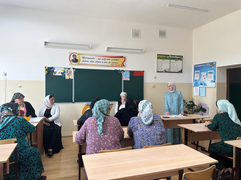 Прямое участие в проведении собрания было принято директрисой школы- Ахмадовой Залиной Сулеймановной. Психолог школы - Виситаева Шовда М., объясняла родителям важность проведения Социально-Психологического тестирования среди детей школы. Была затронута тема проведения СПТ- тестирования, дальнейшее ознакомление родителей с целями и задачами его проведения. Психологу-педагогу задавались интересующие их (родителей и опекунов) вопросы по данной теме. Собрание прошло успешно, родители дали согласие на участие их детей в проводимом тестировании.