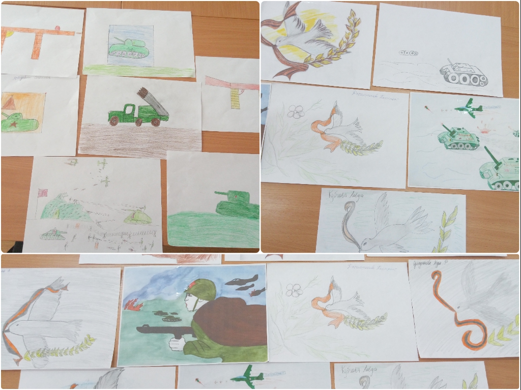 Согласно плану с 25.01.по 31.01.18г. проведен конкурс рисунков «С днем защитника Отечества». Участвовали учащиеся 4-5 классы. Слово «война» у детей ассоциируется со словами «смерть», «солдаты», «танки» и «самолеты», которые стреляют, бомбят. Именно это дети отразили в своих рисунках.