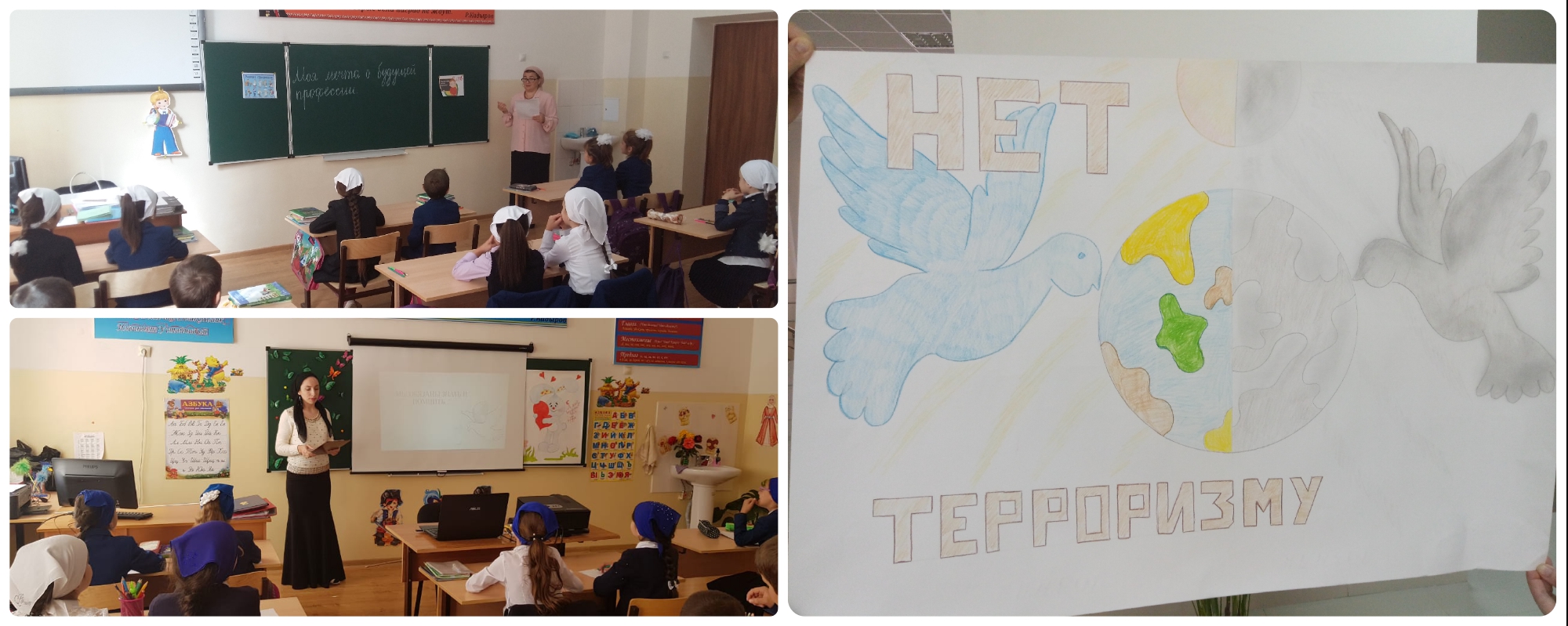 16 октября в начальных классах проведены мероприятия «Мы обязаны знать и помнить…», «Миру-ДА, терроризму-НЕТ!». Провели мероприятия учителя начальных классов Межиева К.Х. И Магамадова М.С..