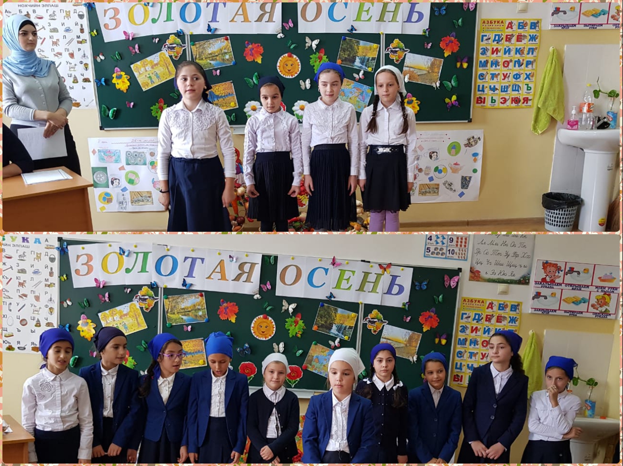 1 ноября в начальной школе прошло мероприятие «Золотая осень». Подготовили мероприятие Магамадова М.С. и Межиева К.Х..Дети декламировали стихи об осени, отгадывали загадки, проводились разные конкурсы.