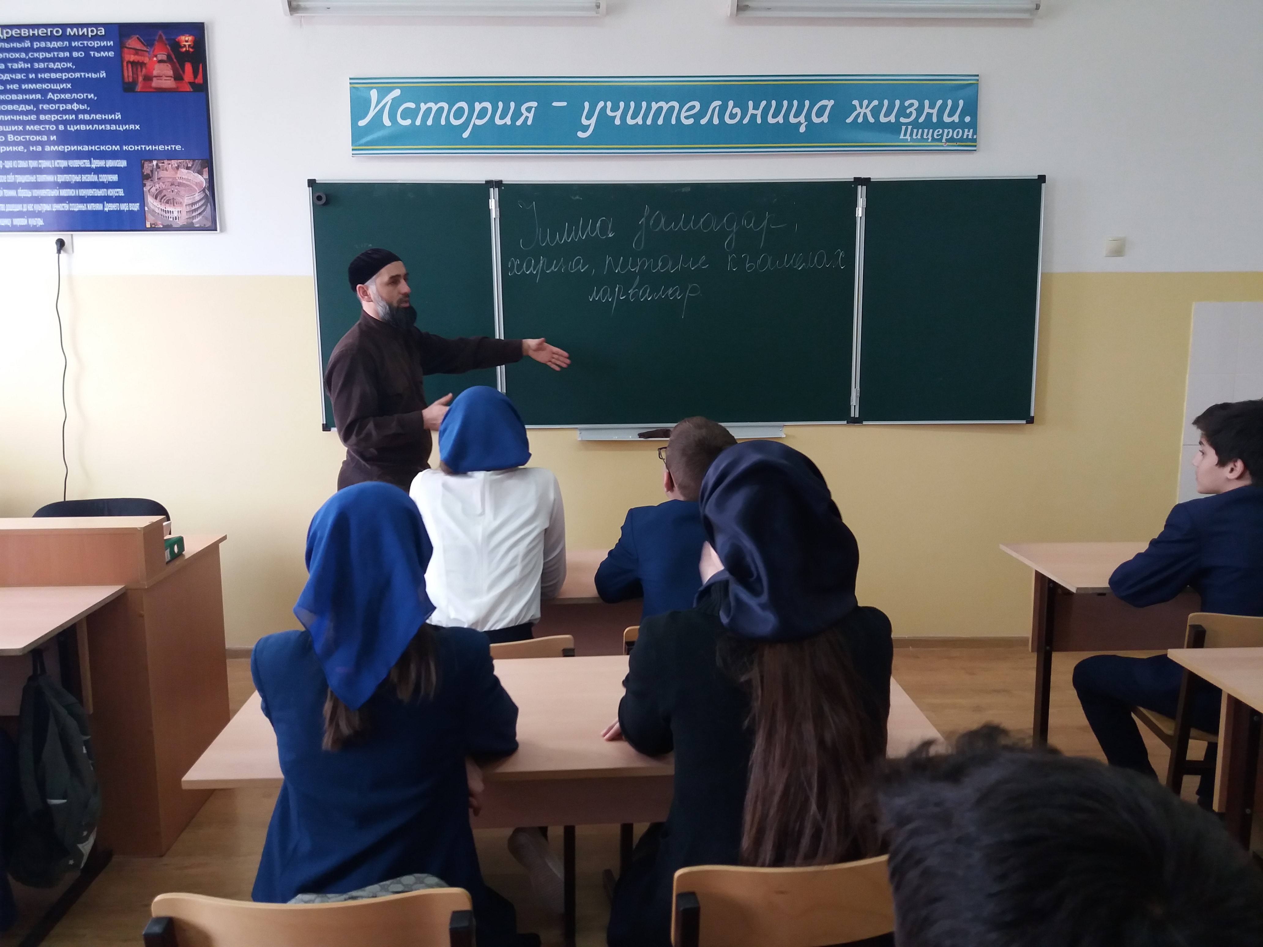 Сайд-Хусейн Сайдаминович подчеркнул в своей беседе, что чтение- лучшее учение, говорил о вреде сквернословия, какие последствия происходят после него. Рассказывал, что говорили Эвлияи о пользе учебы, о том, какую цену имеет грамотный человек. Привел примеры из жизни. Учащиеся с интересом слушали беседу. Детям была дана возможность высказать свое мнение. Вспомнили крылатую фразу: «Чем ты умнее, тем больше следует учиться». Вот почему так важно никогда не переставать учиться.