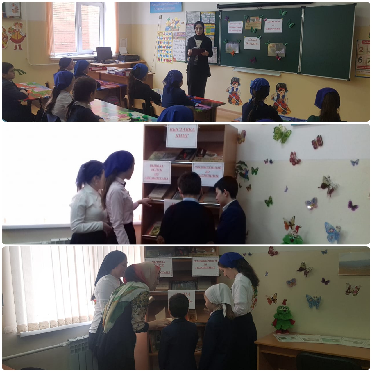 Разработанный классный час Межиева К.Х. проводила с учащимися 4 класса. Учащиеся прослушали историческую справку о начале военных действий в Афганистане, о вводе в страну Советских войск, о жизни местного населения. Обратилась к детям с просьбой помнить и чтить героев той войны, с почтением обращаться ко всем, кто прошел через горнило тех событий и остался жив.
